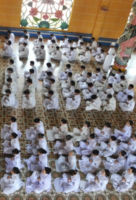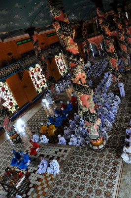 We arrived at the temple in time for the noon prayer. I love the sound of prayer, which yes is weird, but the chanting and bells and strong incense relaxes me. The temple itself was amazing, very ornate and fancy. Cao Dai temple is a place of pilgrimage for quite a few South Vietnamese people. Cao Dai was founded in 1926 and this sect is the largest.