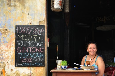 Once back in Hoi An we decide to go for wood oven pizza and of course cheap beer (50 cents for a big bottle of Saigon). While there the “girls” walked by and we called them in to join us. A few hours later and way too many beers we were still laughing and talking. After we stumbled home I passed out and James craving something salty ate chicken noodle soup dry out of the package. Ahhhh we are a classy couple.