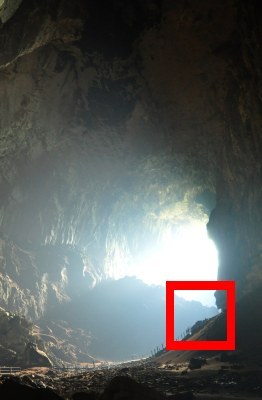| An idea of the scale of Deer cave. The entrance is about 150m by 150m, just about tall enough to fit a 50 story building. | ||
