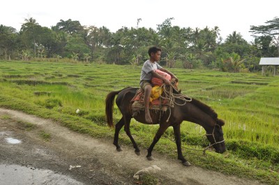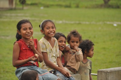 | Friendly Timorese children, ponies are the popular form of transportaion in the mountains |