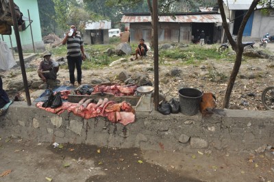 James had booked a 7:30 am hike forgetting I wanted to see the morning market. So when the guide showed up 1 hour early he got up and left and I stayed snuggled in our nest. I wanted to see the local market more than I wanted to do a cold hike up a mountain. A few hours after he left I finally crawled out, layered on everything I’d brought and went in search of the market. Everyone seemed to be walking up the hill so I figured they were much earlier than me and were likely walking back form it. You can almost count on me always going the wrong way; a few minutes into my walk Damian, the nurse, passed me on his bike and smiled and pointed me in the right direction. Everyone was out it seemed, all walking to and from the market, and they all had big smiles and greetings for me. A few minutes later Damian passed me on his bike, quickly explaining he had an emergency up the mountain, I complimented him on his “ambulance”.