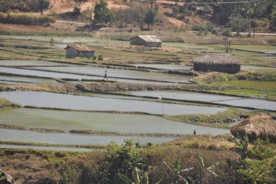 Mountain village, rice paddies |