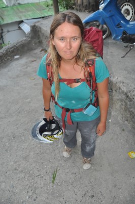 We pulled into Same in the late afternoon and after a few turns around the town found our guesthouse. Like I mentioned, it was advertised all over Dili and we were excited to spend a few days “In lush, green Same at a guesthouse with beautiful views of the surrounding coffee fields and mountains”. The advert boasted gardens, traditional food and organized hikes. The guesthouse was smaller than we expected and locked up. Thankfully we had a phone so called the number on the sign. The lady said she be down in 5-10 minutes. As it turned out it was only two rooms, no running water and any meals we wanted we’d have to call her and she’d bring it down the road from her house. It was surrounded on two sides by dirt (soon to be planted?) the road (about 4 feet from the building) and a sheer cliff that was littered with garbage. And she had raised he prices; the bunk bed room would cost us $30 /night. Ouch! We had a quick talk and decided to take a peek at another hotel or two. James left on the bike to take a look at the one just down the road. I tried to explain to the lady that the price was a bit high and we were looking at others. Her reply was “So when your husband comes back you’ll be leaving”…..hhhhmmmm so she knows she’s too expensive and others maybe have done this before? We ended up in the Same Hotel where we got an onsite restaurant, running water, a shower head, and a clean room with a double bed for $35. We were also told we should have electricity every second night from 6:30 pm until 7 am every day.