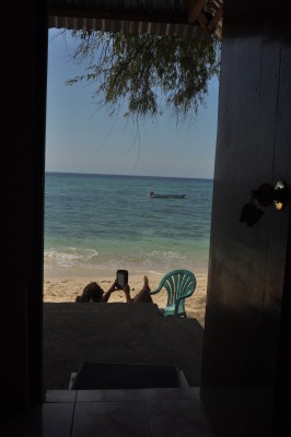 Relaxing on the beach, view from our room |