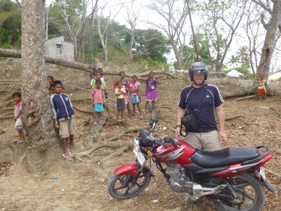 A few more hours and we were well into the mountain and alternating between circling them and driving along the ridges with steep drops looking down into the valleys between. The higher we got the air became fresh and crisp and the kids and dogs got cleaner and looked more healthy. Everyone also started to go crazy when they saw us. They would hear the bike and turn, see it was foreigners and scream and start running from houses, fields and hills to try to reach the road for a wave and a high five (which they usually could do, we weren’t going very fast…sorry James). I have to admit I am very impressed with James. He hadn’t driven a motor cycle in about 15 years and East Timor’s drive on the left hand side. So, with a passenger and a fairly heavy backpack, he’s relearning how to drive a motor cycle – going up a mountain.