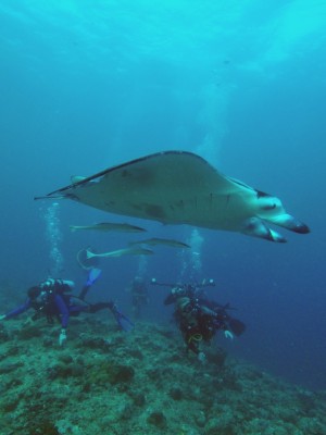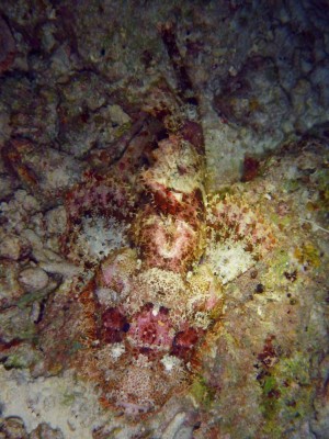 After the third dive I sat in the parlor with tea and snacks and visited with the group. I hadn’t found any place that sold sun glasses (where are all the men with suitcase full of them?) so tanning/reading/sleeping on the sundeck might be out for me this trip. The group might turn out to be one of my favorites. It’s not very often you have a group of 10 divers that are all great to dive with. Everyone was polite, new how to dive well (we of course had different levels of experience and certifications) and were aware of ourselves and others. No one felt the need to push their camera in anyone’s face or to get so close that you get a fin in the head. No one was bossy – quite the opposite, everyone was helpful and smiled and teased. We finished the dive day with a night dive. I am not in love with them. It’s kind of scary jumping into the dark sea and I don’t see much with just a little flashlight. What you do see is cool, very different form day dives, but not even close to the quantity. I also get a bit freaked out about the unknown, who knows what can swim up and eat me.