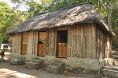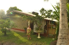 MOOREA, FRENCH POLYNESIA | CAMPING NELSON | $60, DBL/FAN/SHR | Cute traditional Polynesian hut, steps from ocean, friendly watch dog, kitchen facilities, hand washing area, lots of 1970’s half naked European hippies |