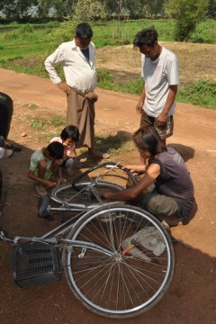 We've only been on bicycles 6 times, and have only gone 80 km...but managed to get 4 flat tires and a set of wonky handlebars. |